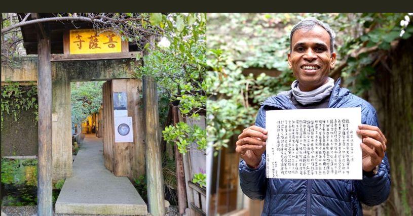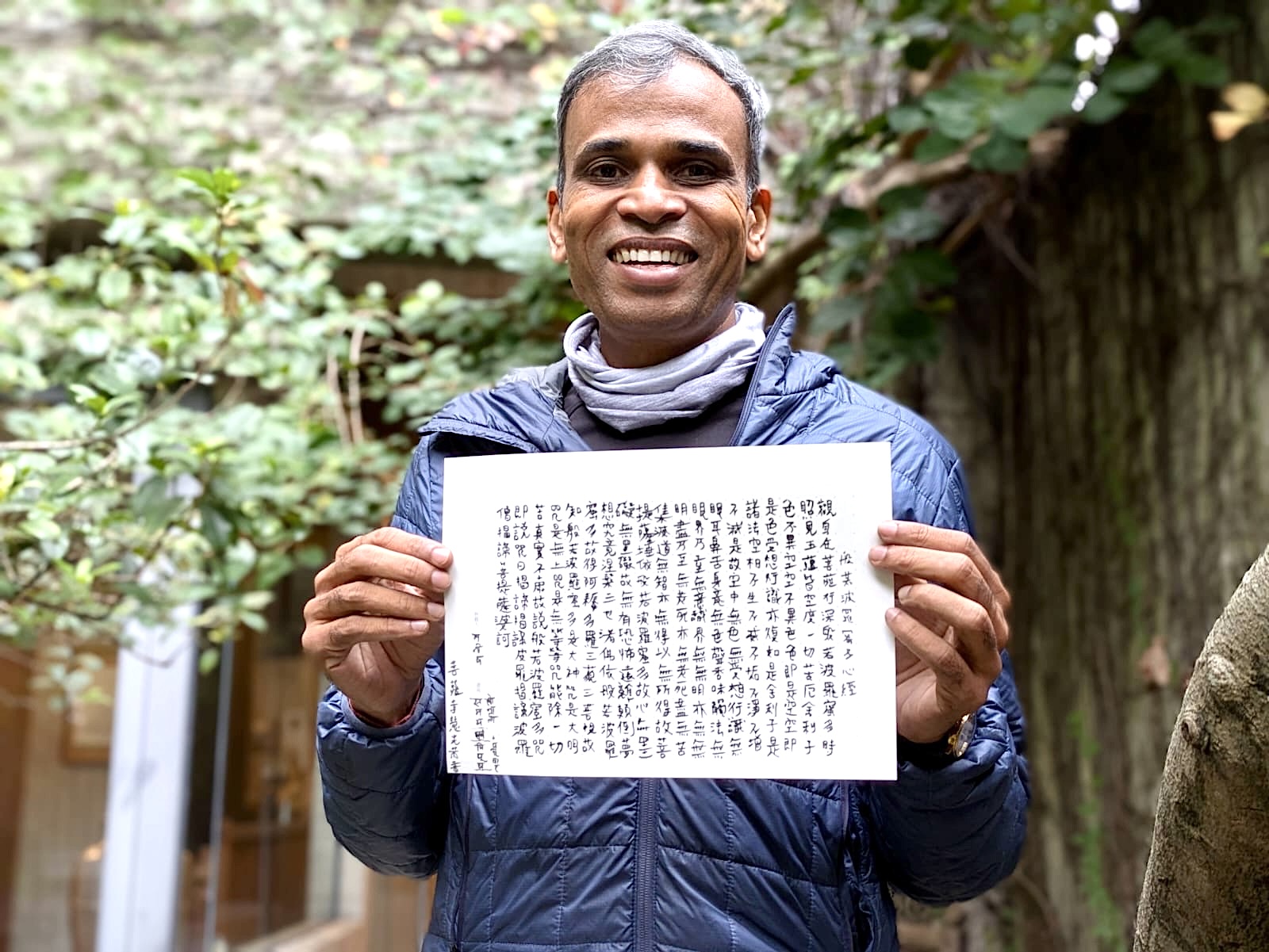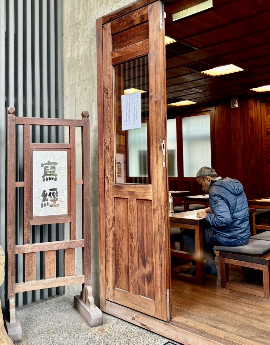 My friends Jayce and Crystal invited me to visit a temple in Taichung, Taiwan. I was excited to see the statue of Buddha and hear the Sanskrit chants. After receiving blessings in the main temple room, my friends walked upstairs and showed me another room where people were sitting in silence and writing something at their desks. They told me that it is a meditative writing practice where they copy the Heart Sutra in traditional Chinese. They asked me if I would like to experience that, and I spontaneously agreed.