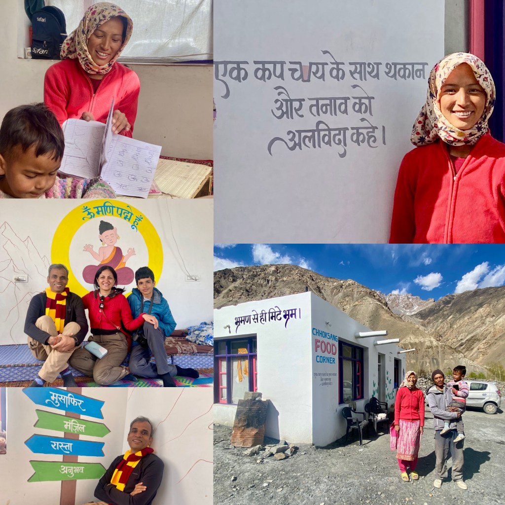 Inside, the walls were covered with beautiful calligraphy, murals, and travel quotes—all painted by a group of artists who had once stayed with her. Inspired by her life and spirit, they left behind their brushstrokes as a gesture of gratitude. Every corner of her space told a story—not just of Spiti, but of dreams, struggle, and soul-deep resilience.