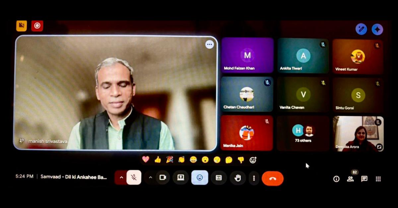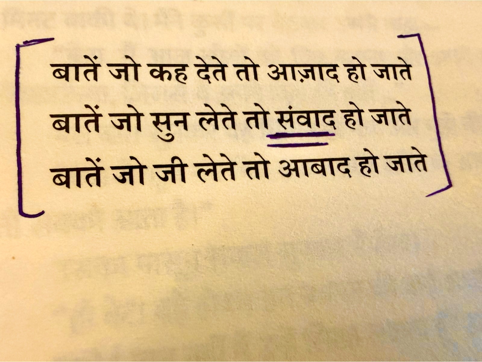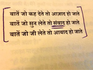 She had learnt about my other poetry circles and read my book, Dil ki Ankahi Baatein. She sent me three lines, underlined the word “संवाद,” and said,