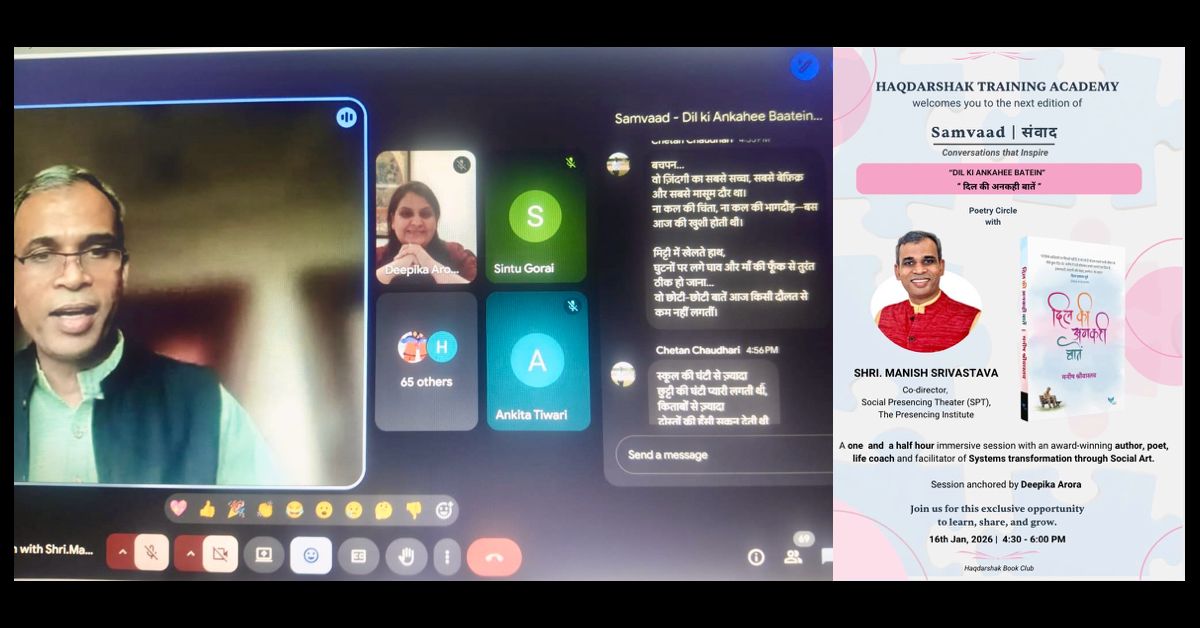 Deepika shared that when she joined Haqdarshak (a Social Enterprise) after working at a large public-sector company, she was deeply inspired by the simplicity and heartfulness of her employees working in the most difficult circumstances across the country. She started an online monthly book-reading club and invited authors to create learning spaces for her people.